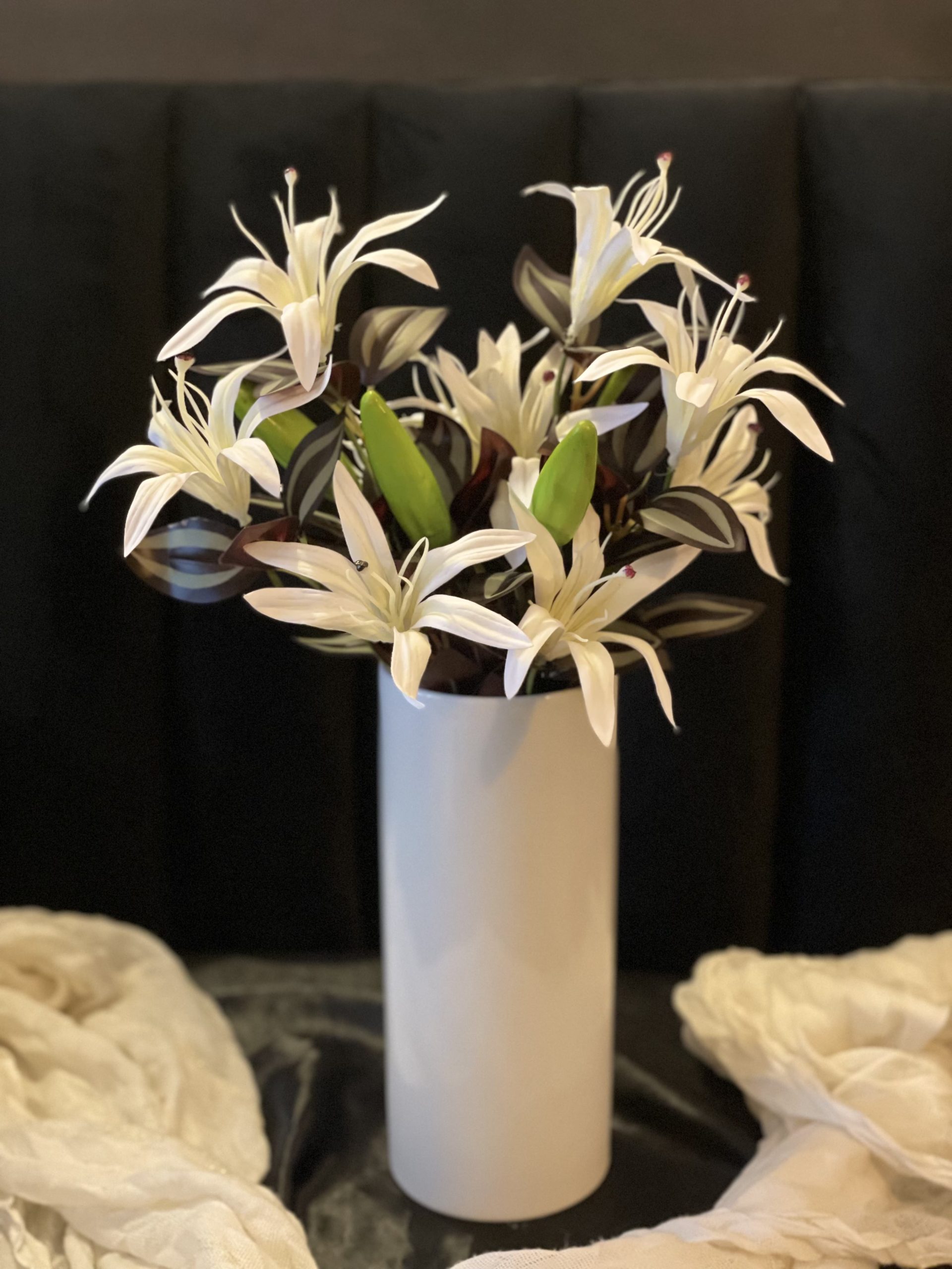 Be the first to review “Elegant Sleek Tube Ceramic Vase (L) with 2 Tiger Lily Bunches”