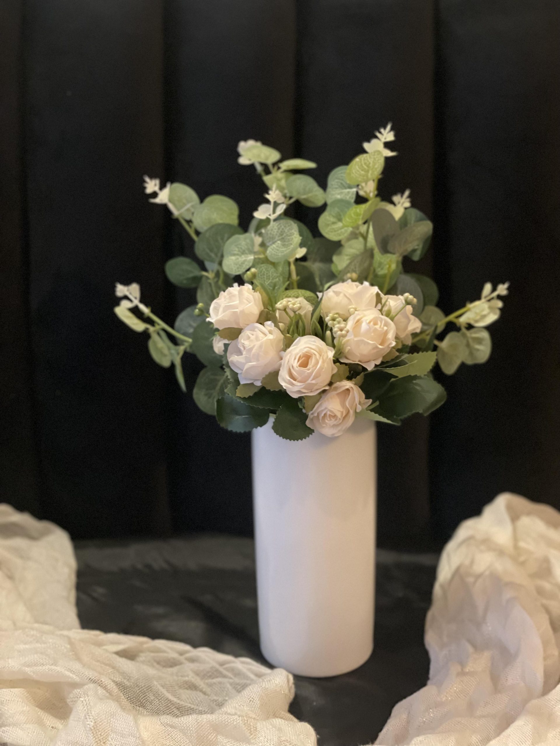 Be the first to review “Elegant Sleek Tube Ceramic Vase (M) with White Rosy Dreams & 5 Green Spring Stems”